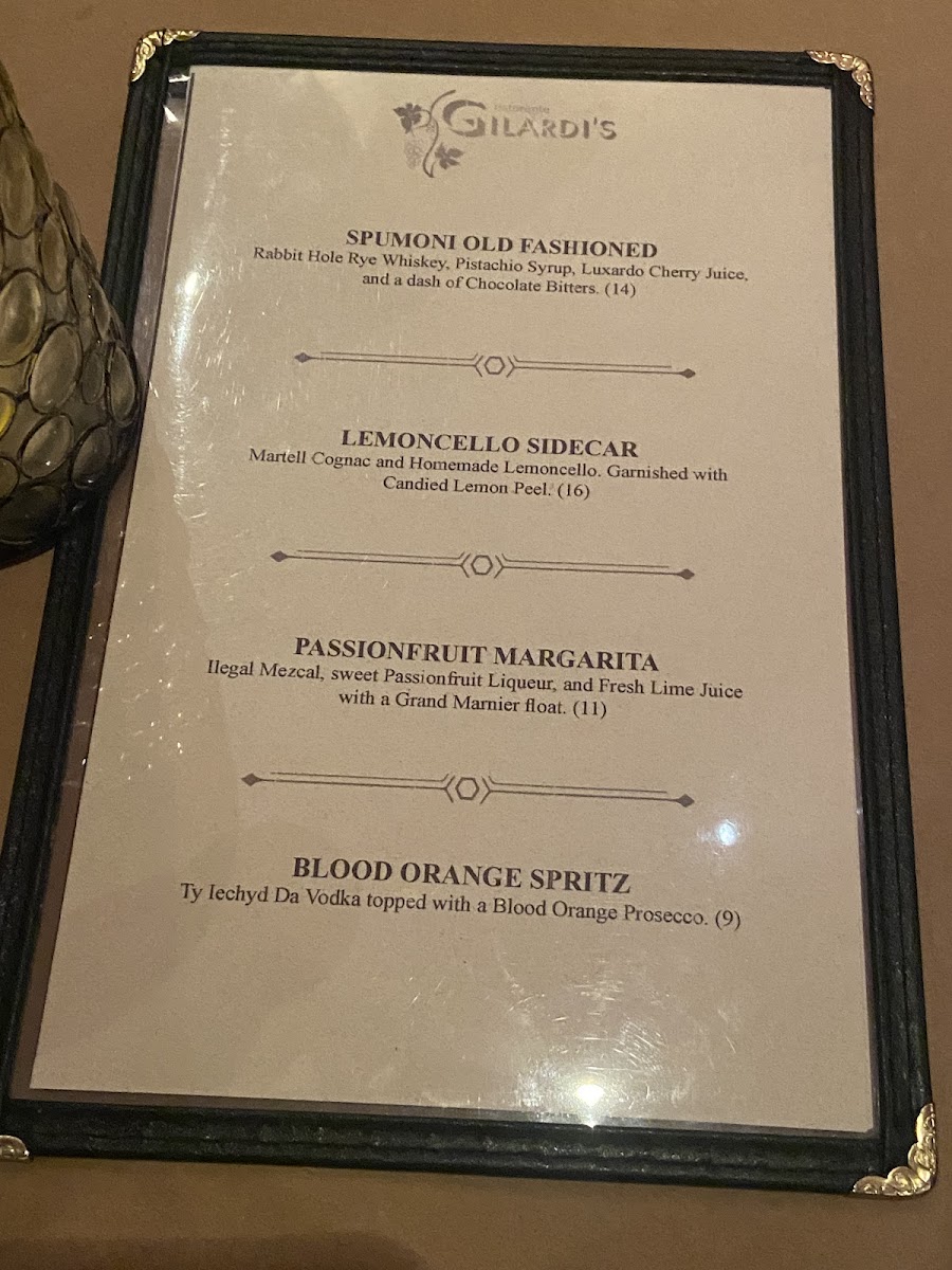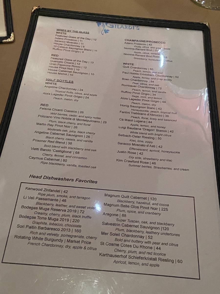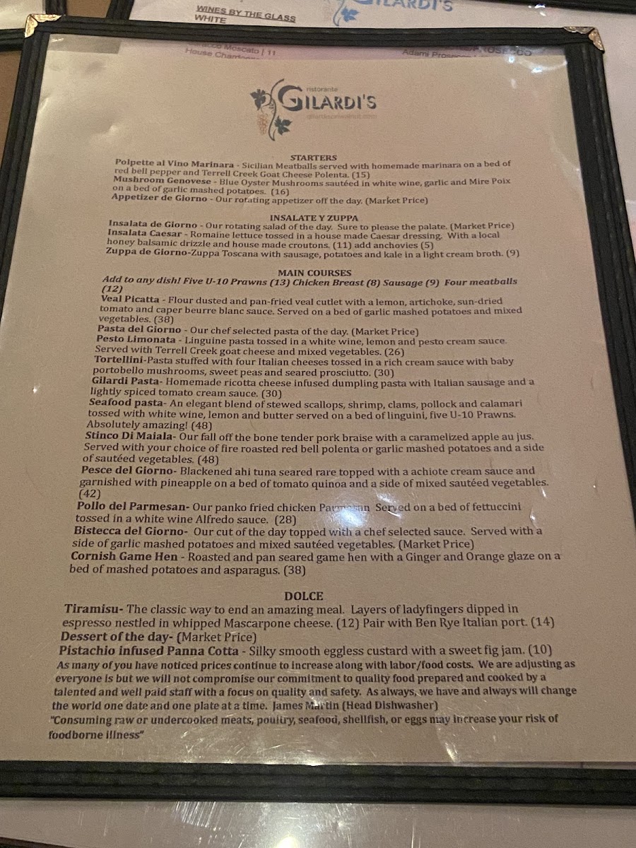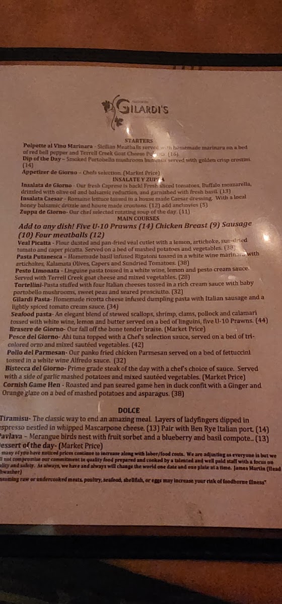 Begin your meal with their acclaimed Gilardi's Pasta or a vibrant Pesto Limonata. Save room for dessert—especially the unforgettable Tiramisu, a rich layering of ladyfingers and Mascarpone that reviewers rave is the best in town. Complete your evening with a thoughtfully selected wine from their bar menu, including sparkling options like Adami Prosecco.